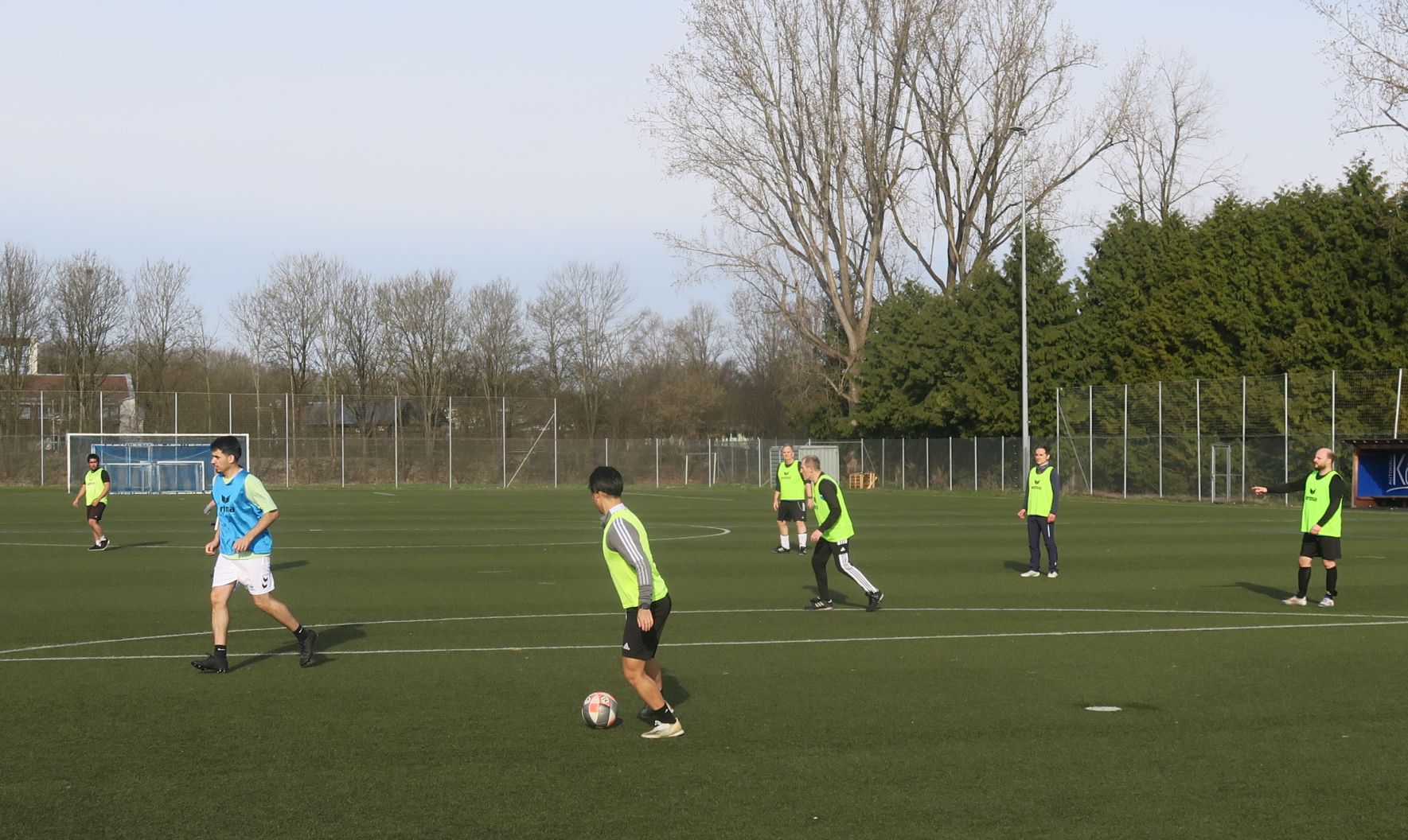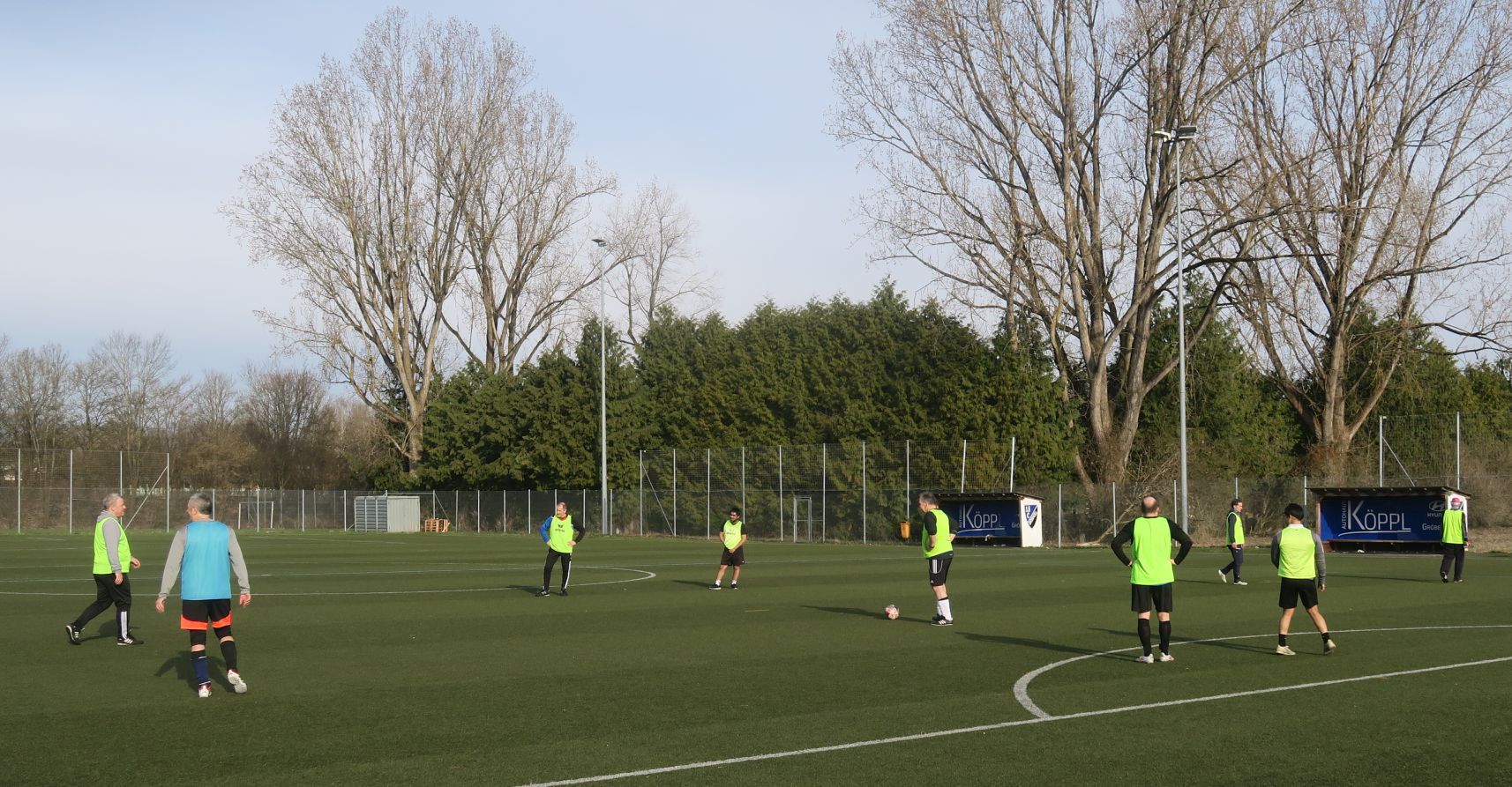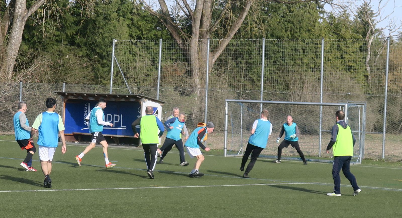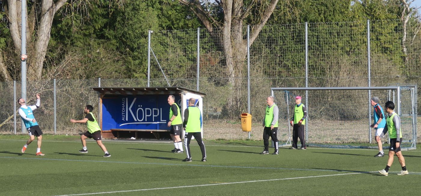 das 1. Spiel läuft; gleich drischt Ali den Ball ins Aus