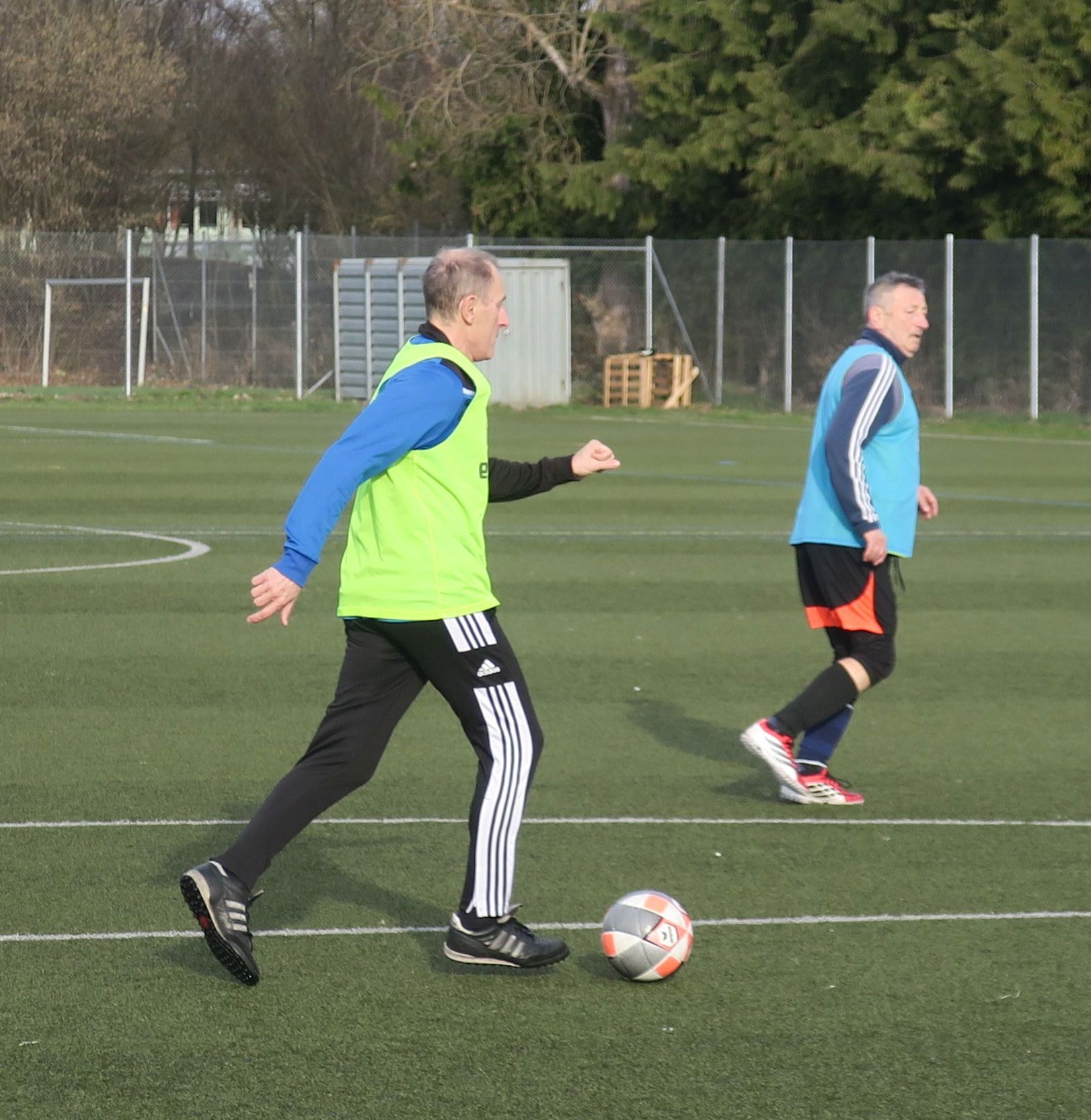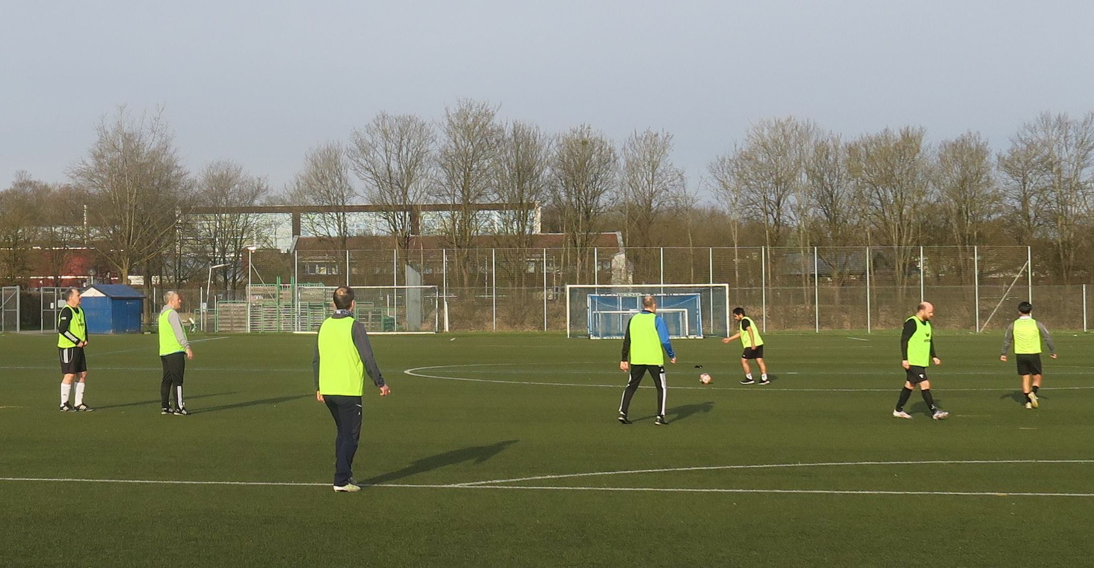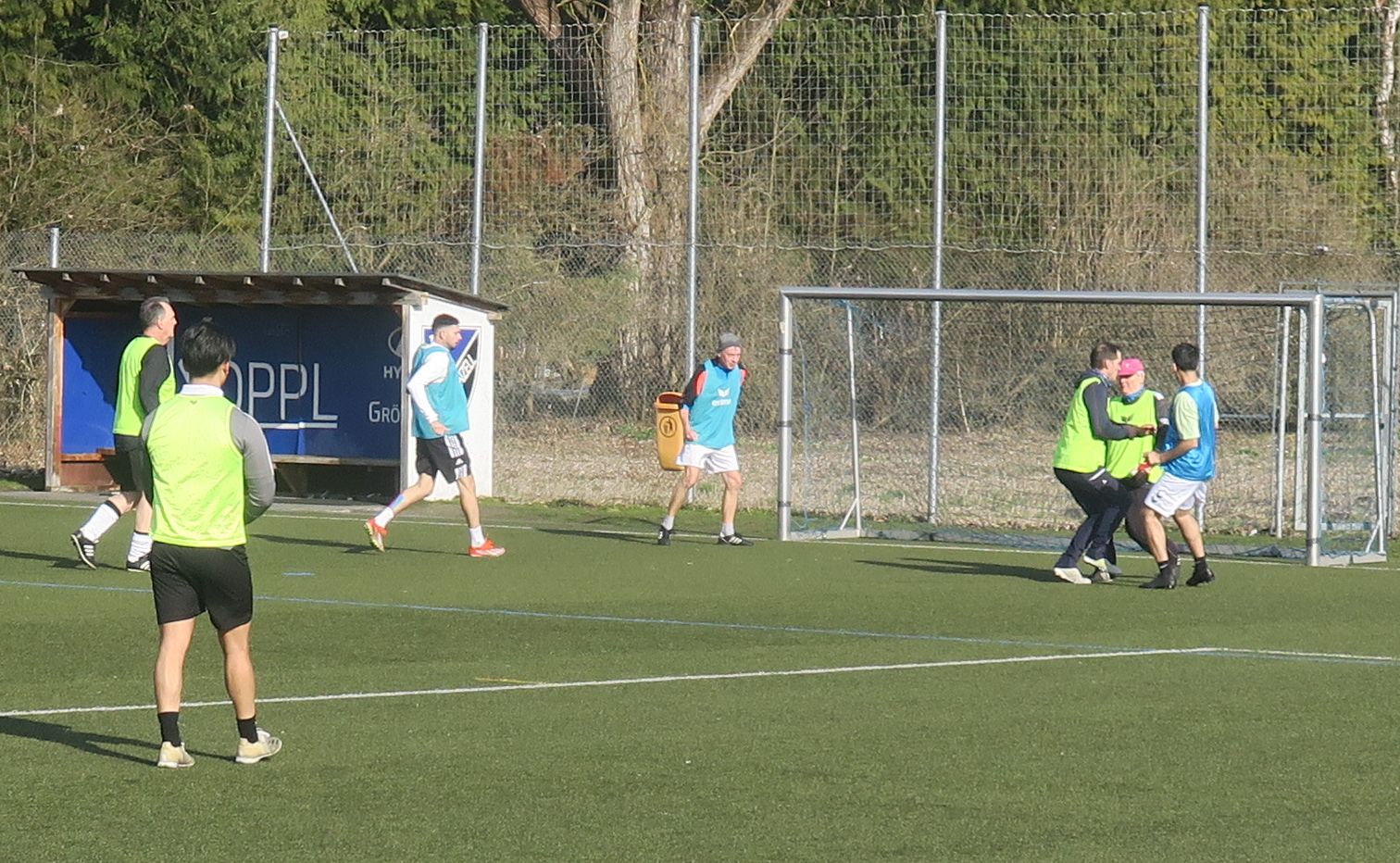 das 1. Spiel läuft; gleich drischt Ali den Ball ins Aus