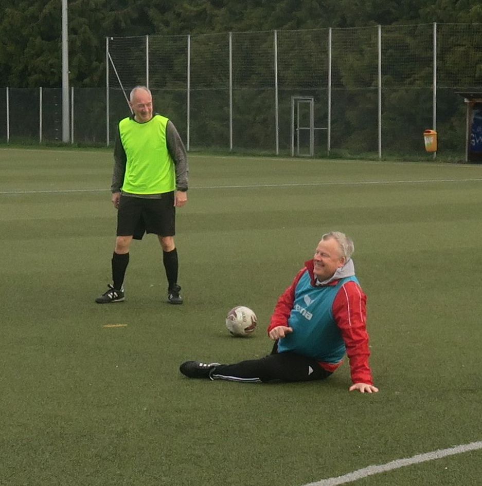 Jörg hat Markus den Ball stibitzt, Markus kann es nicht fassen