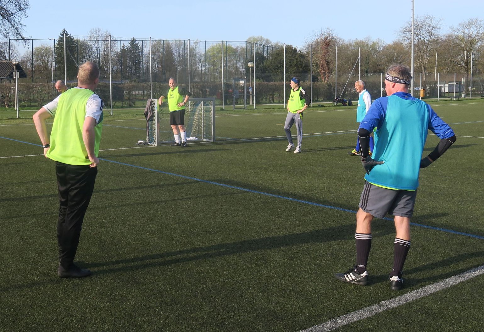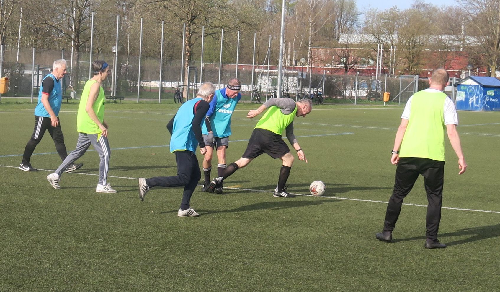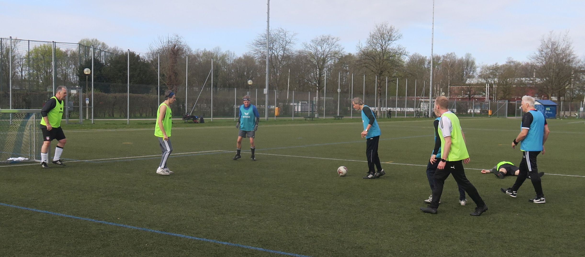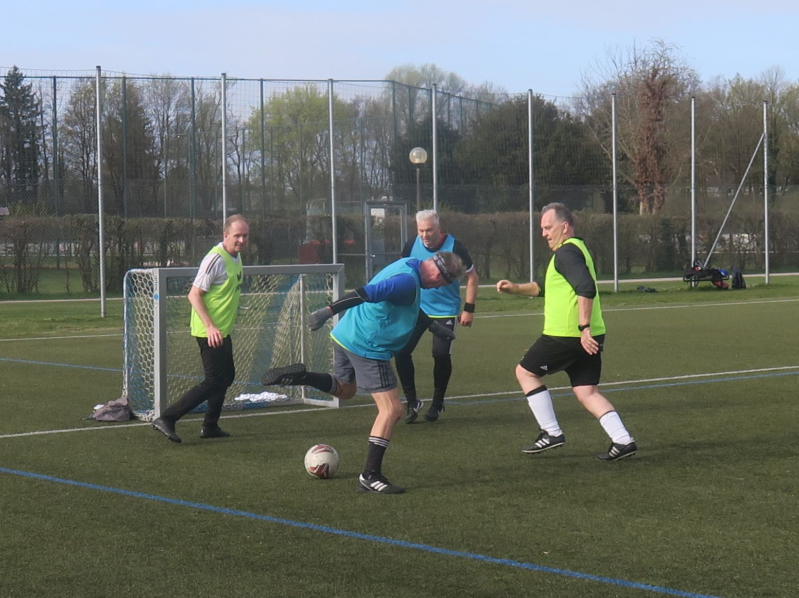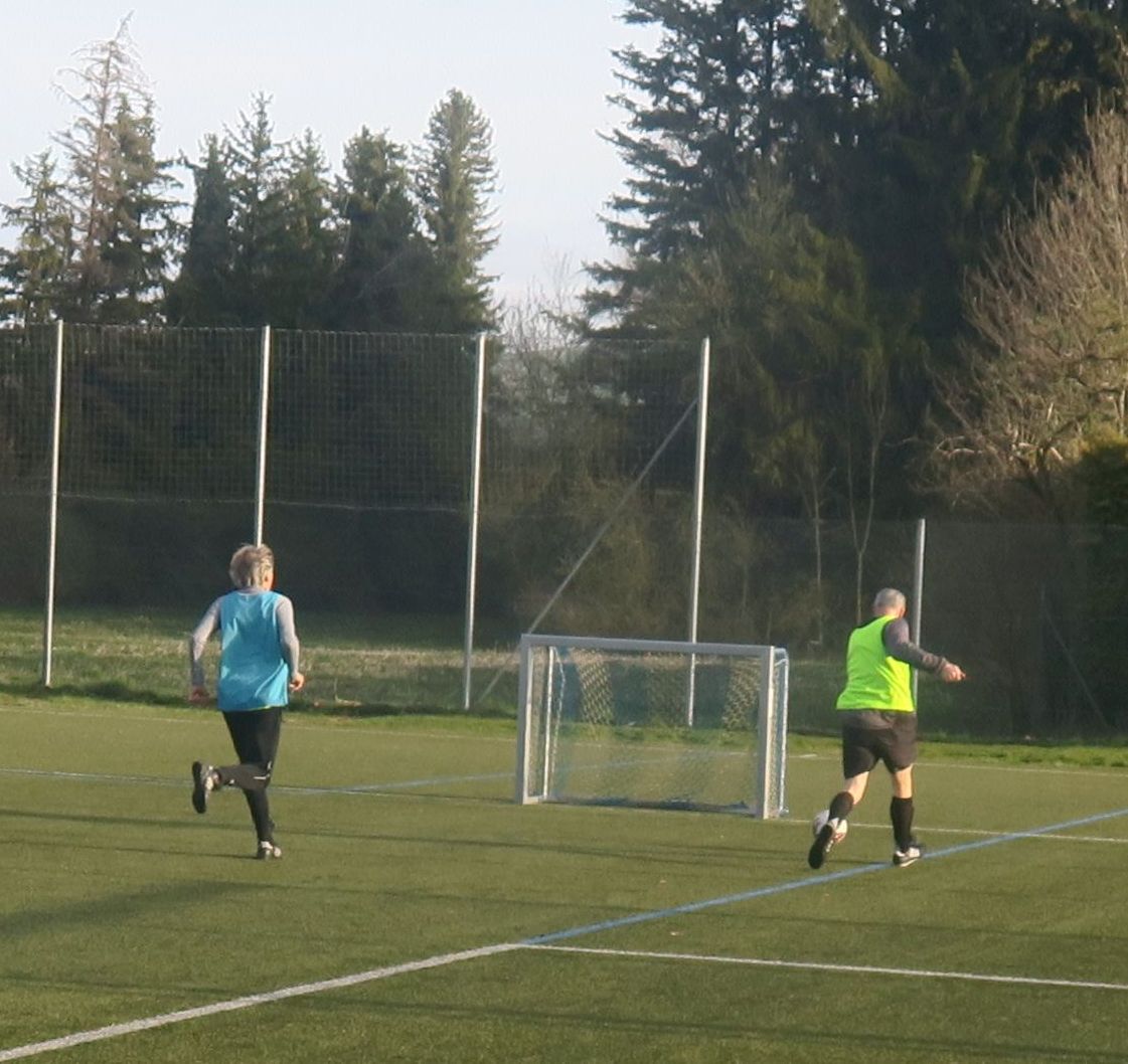 das Spiel läuft: Frank trifft den Pfosten