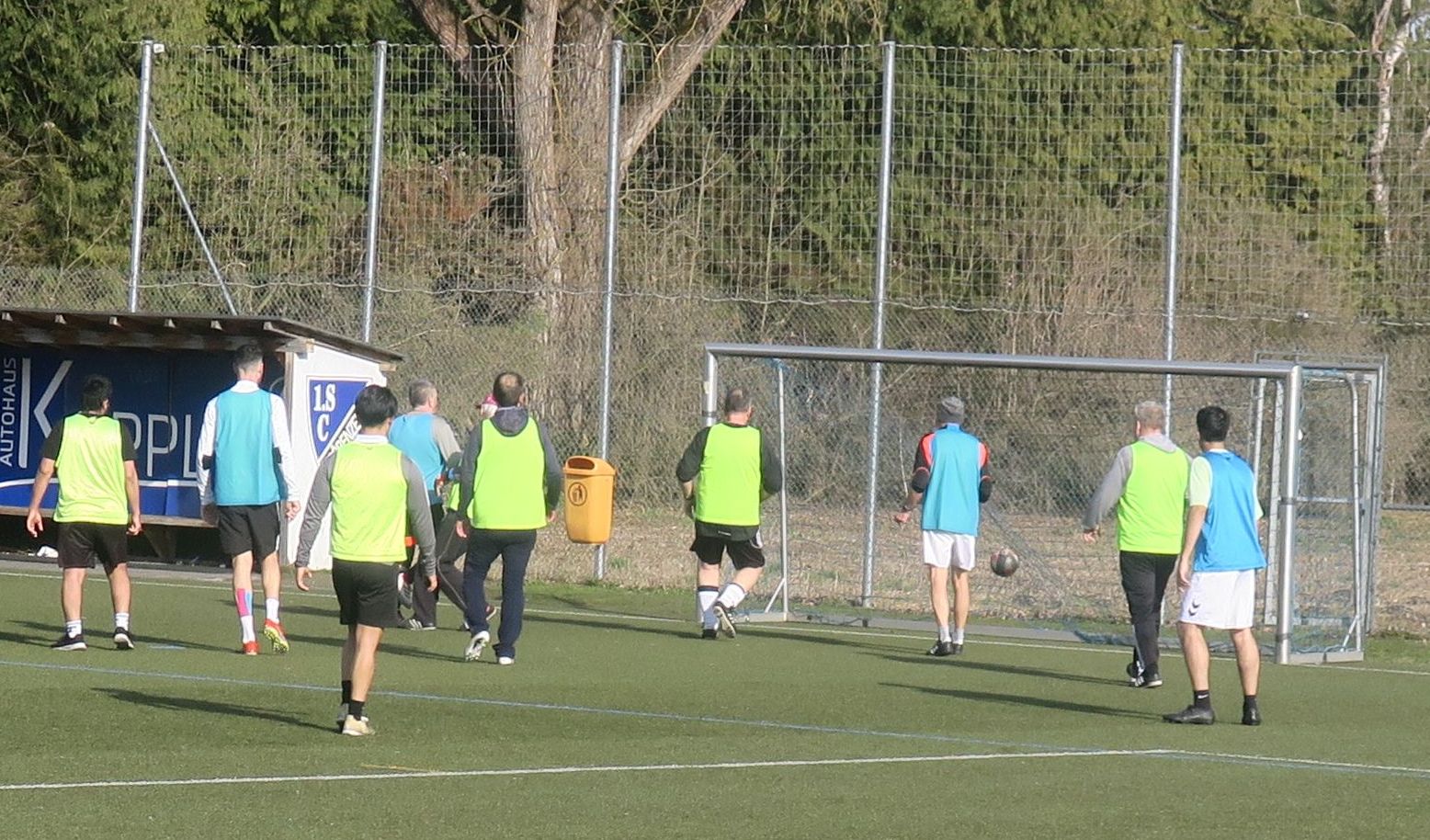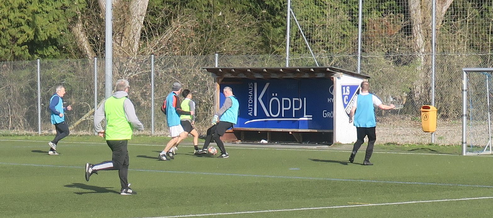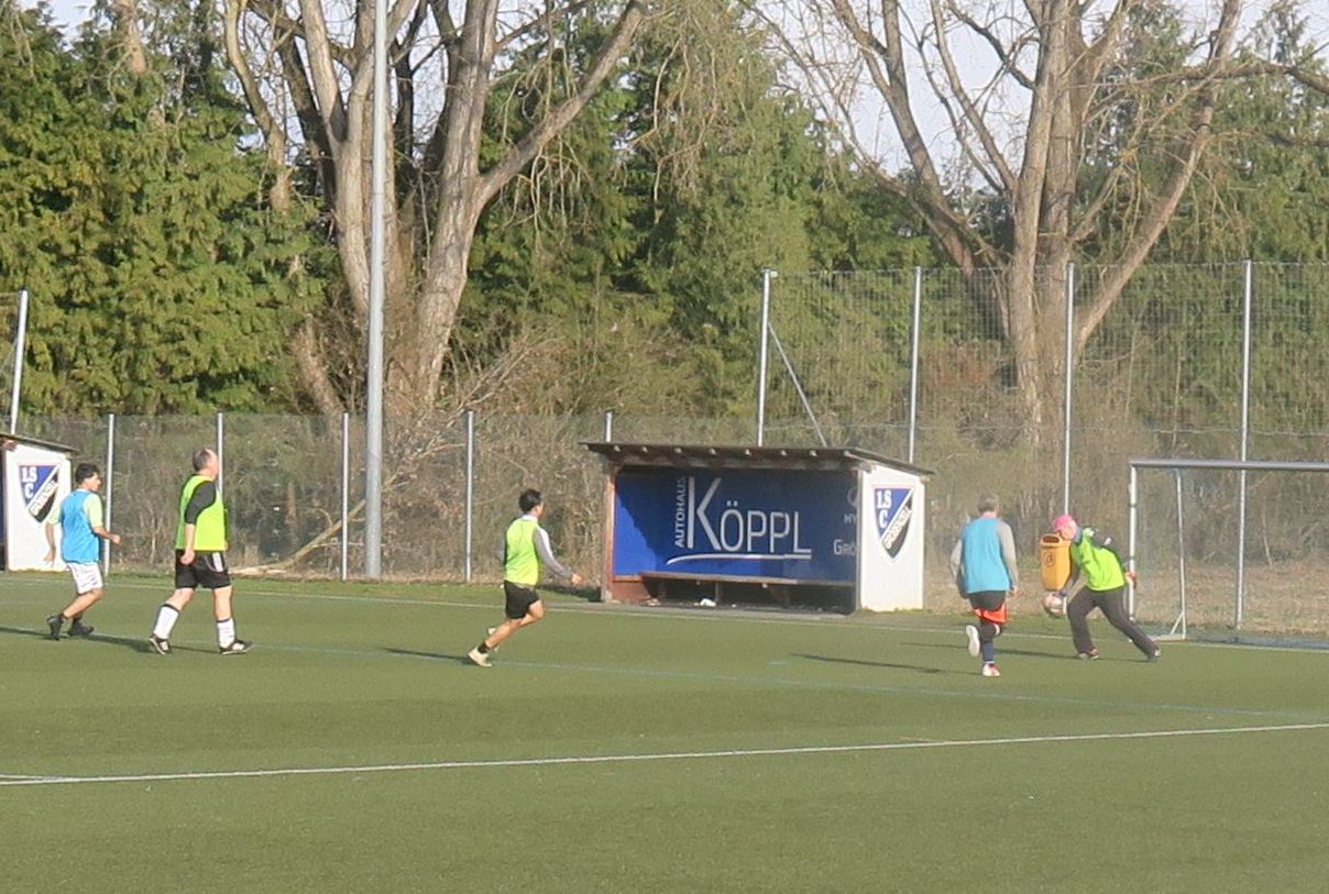 das 1. Spiel läuft; gleich drischt Ali den Ball ins Aus