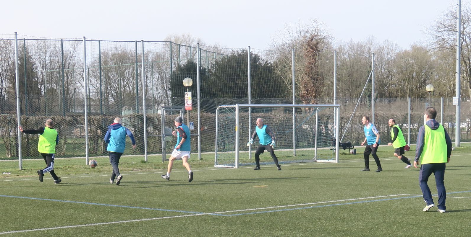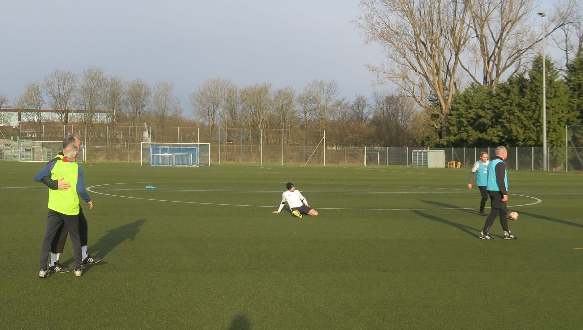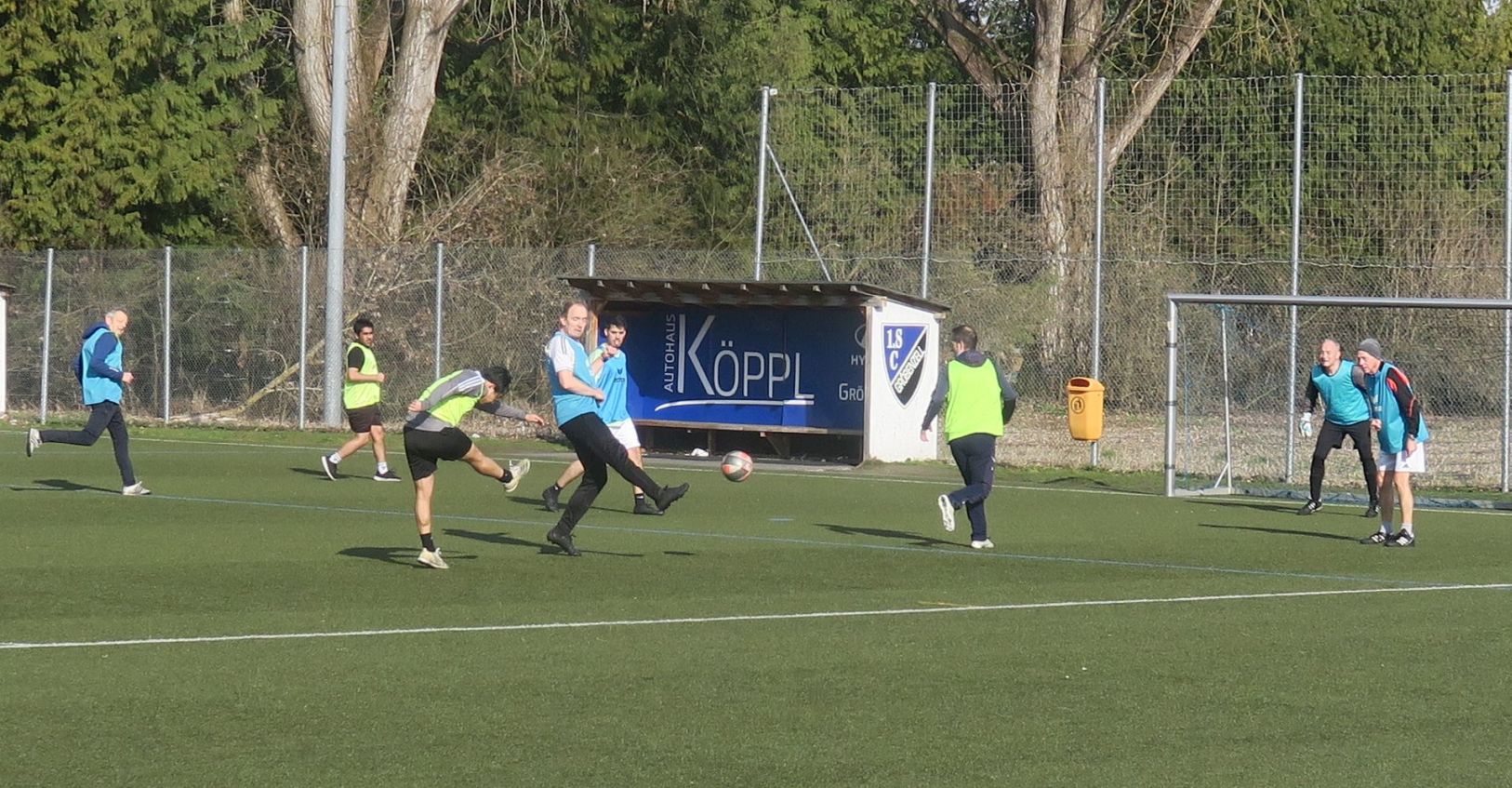 das 1. Spiel läuft; gleich drischt Ali den Ball ins Aus