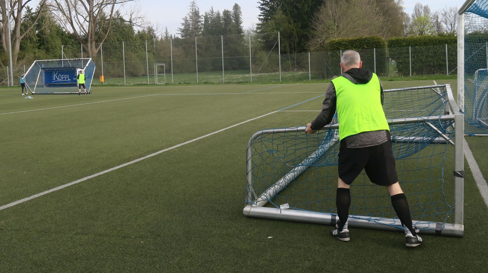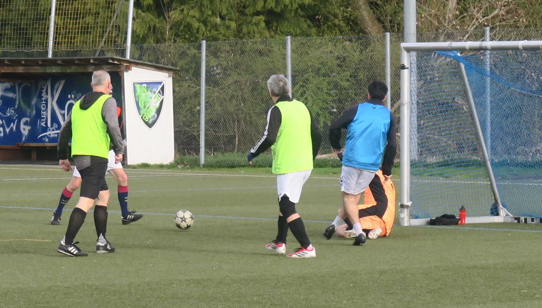Jörg hat Markus den Ball stibitzt, Markus kann es nicht fassen