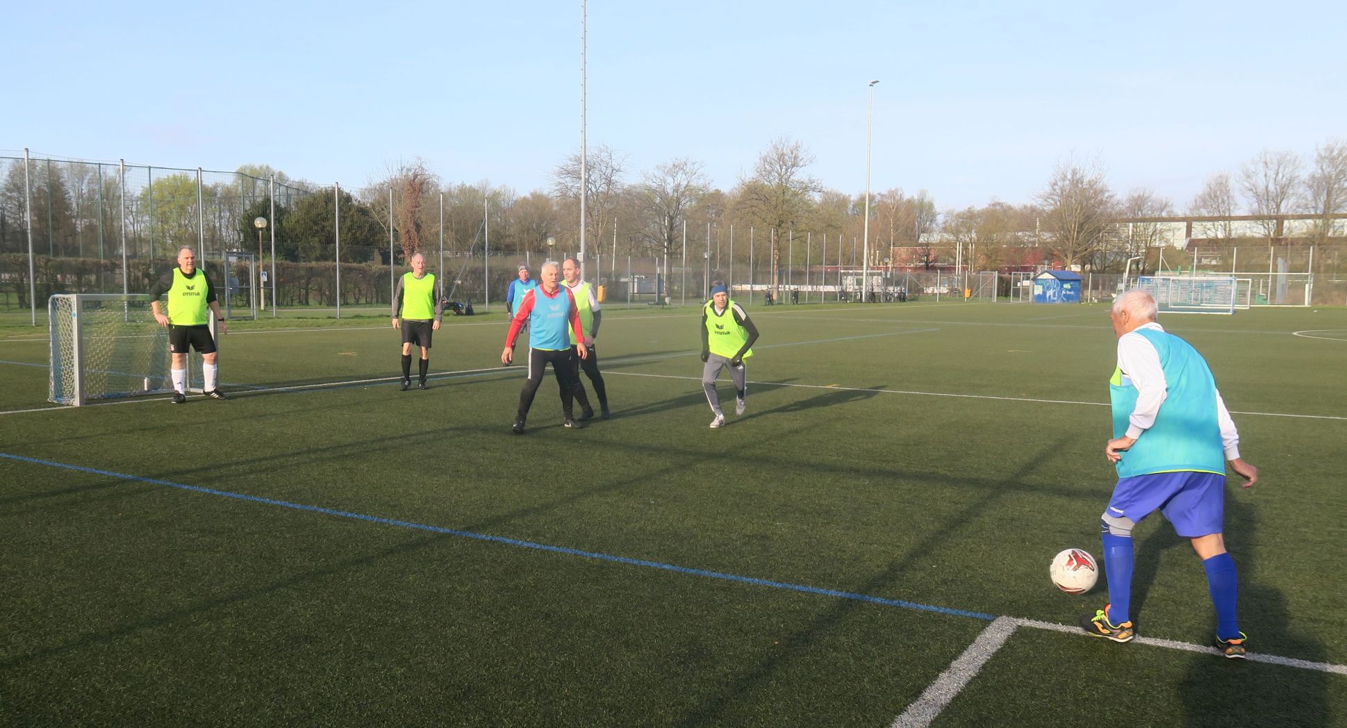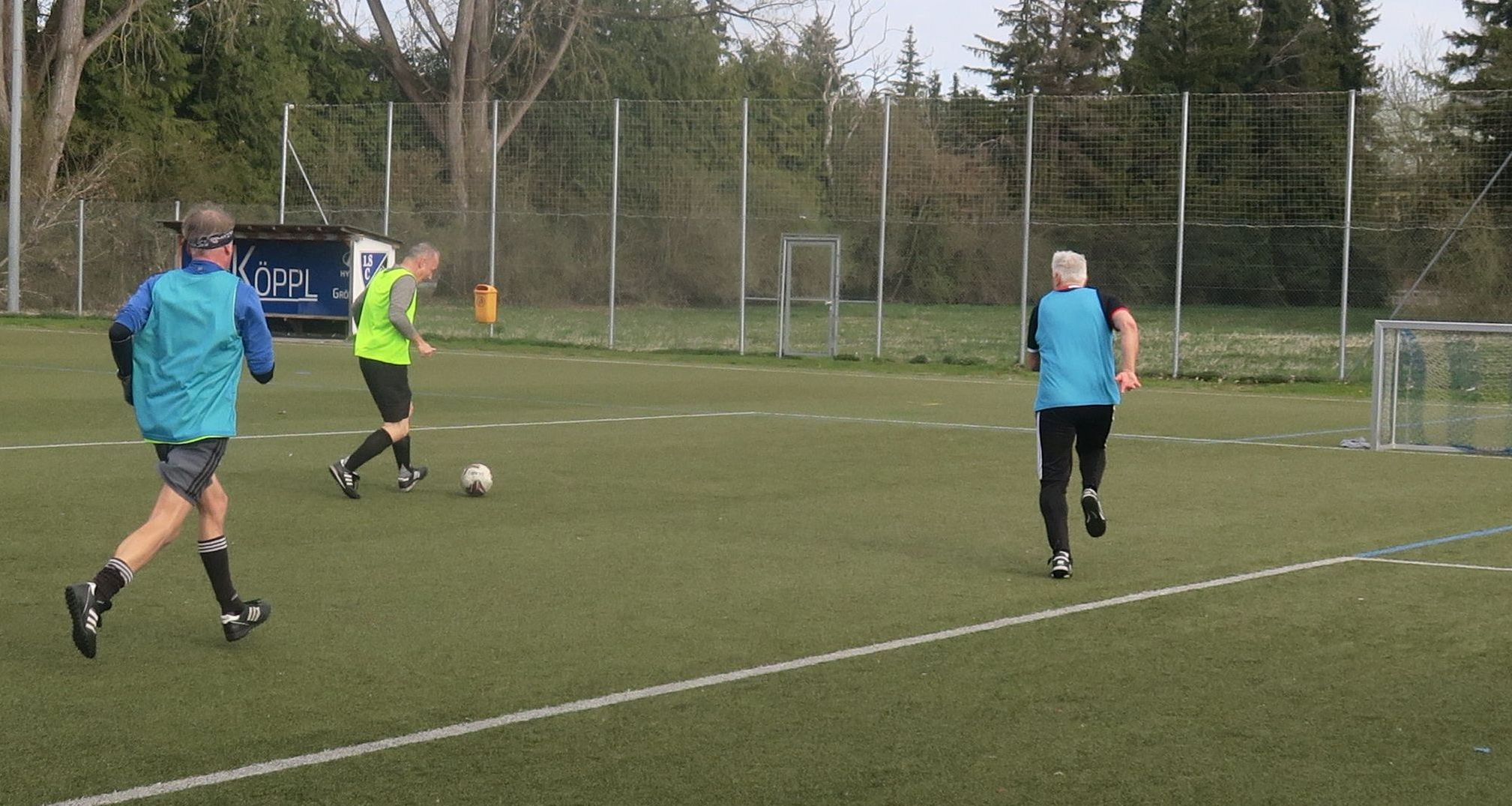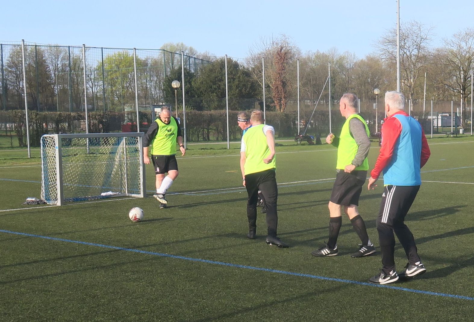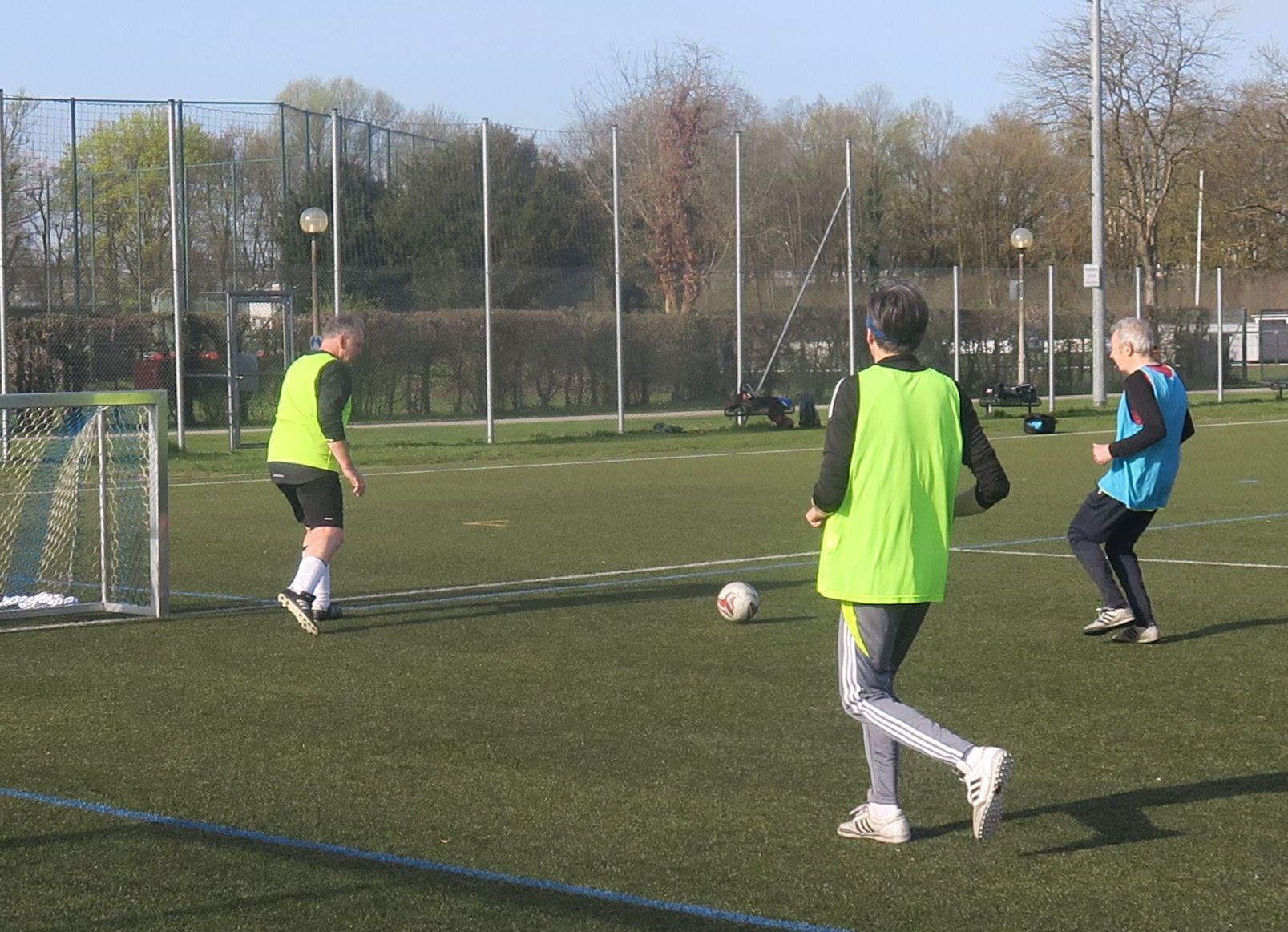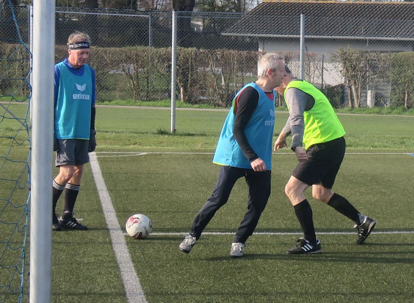 das Spiel läuft: Frank trifft den Pfosten