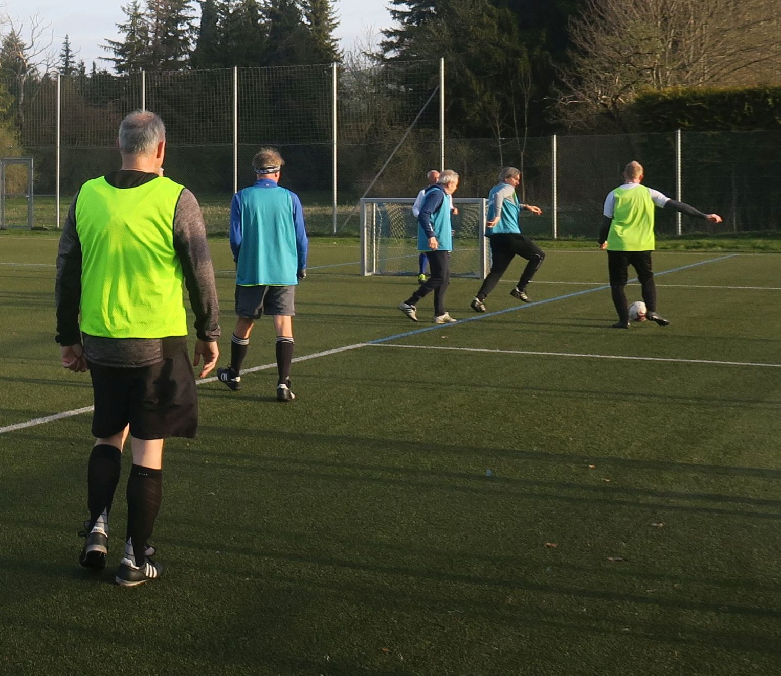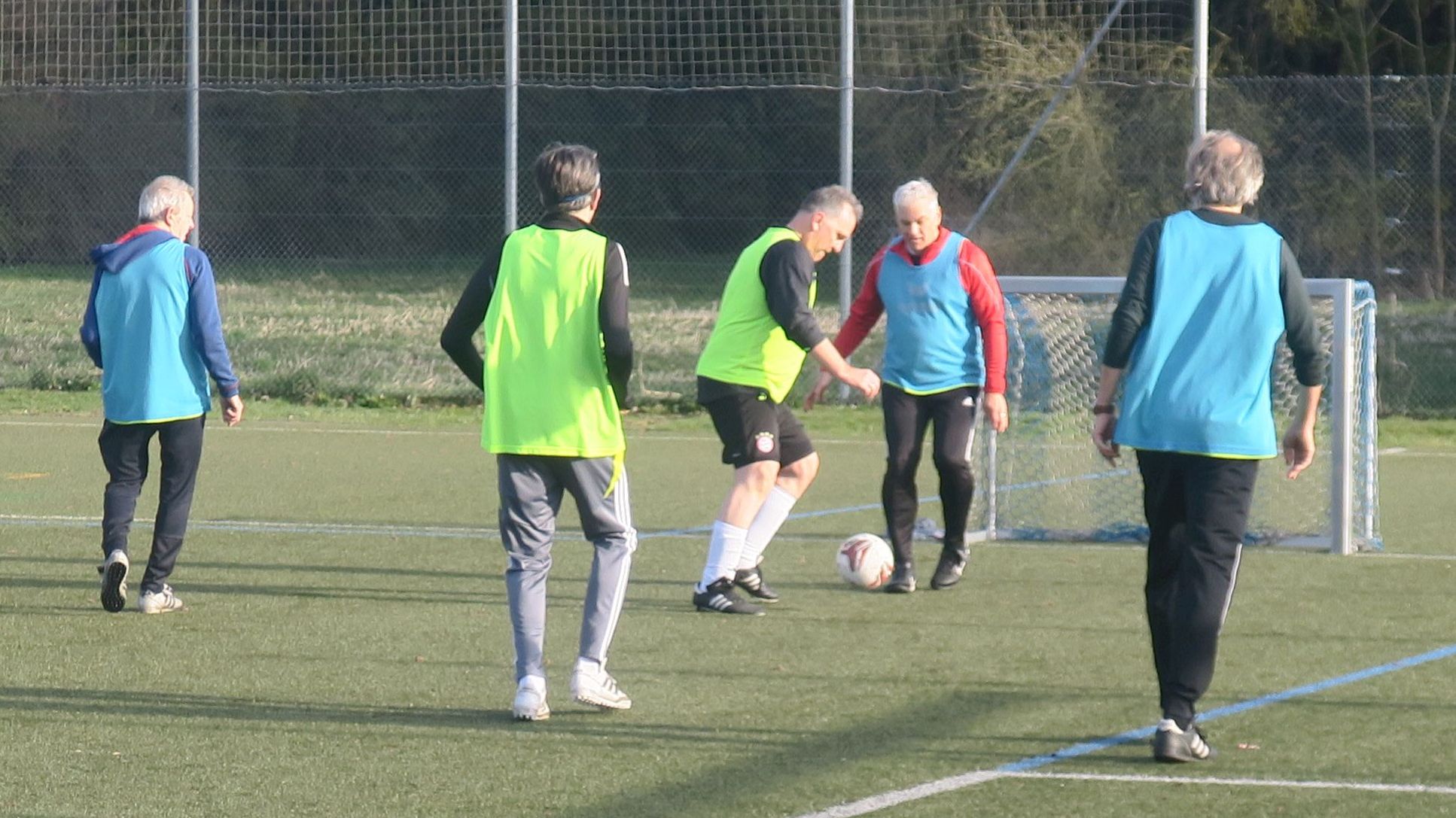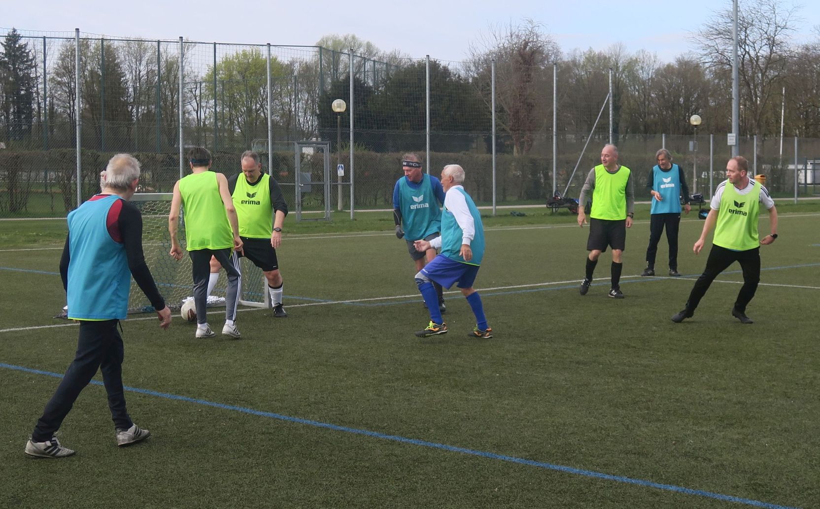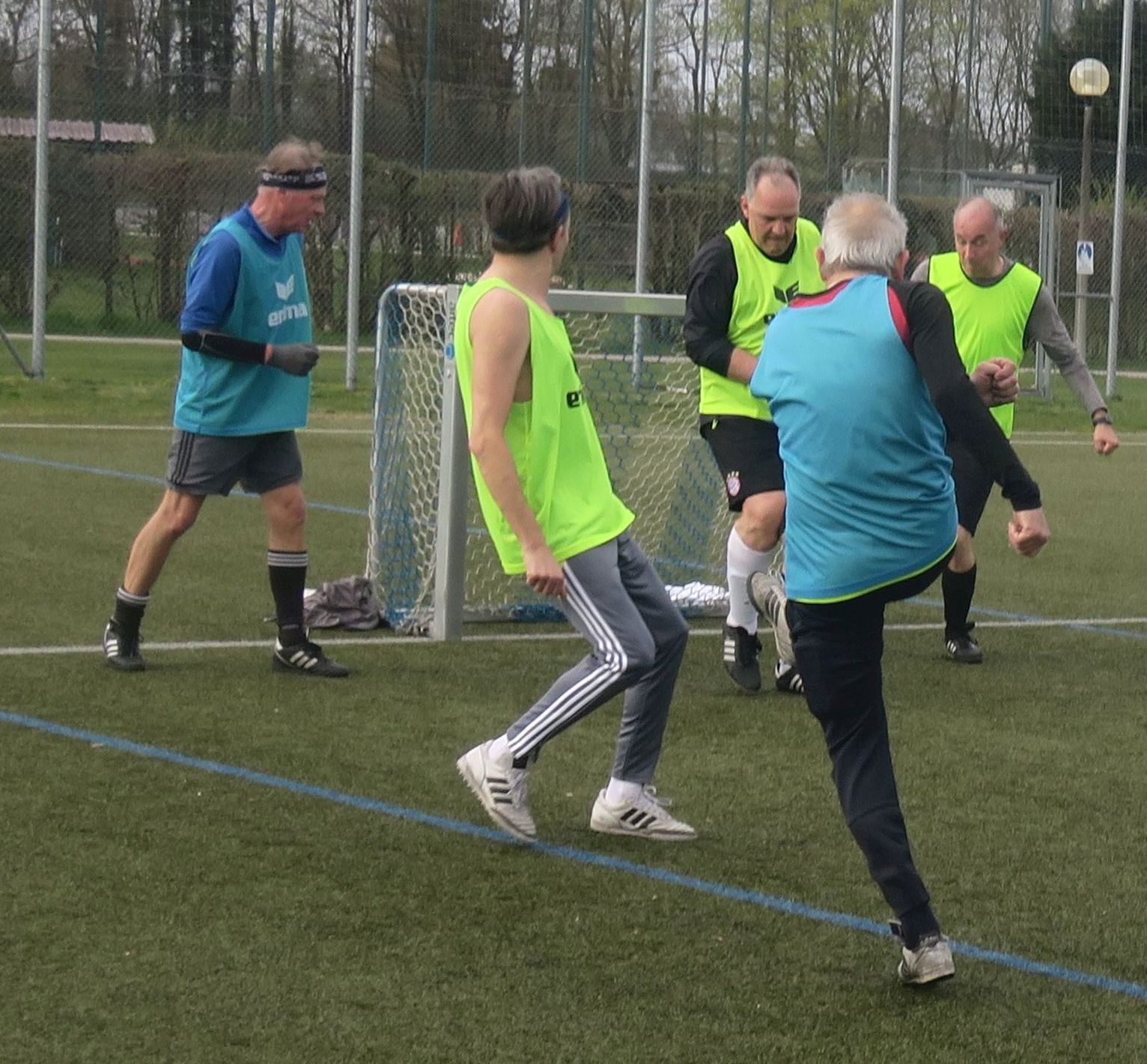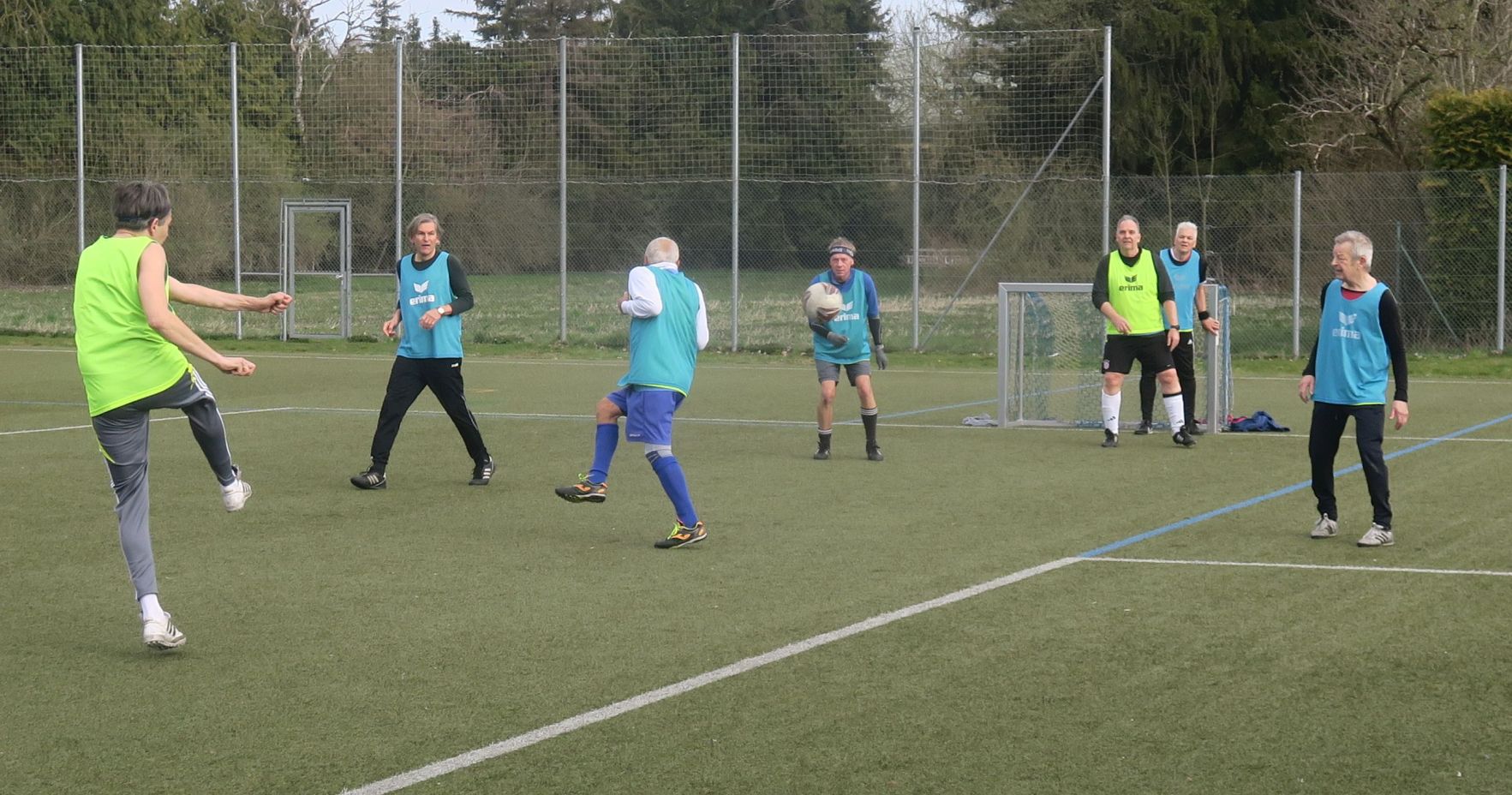 das Spiel läuft: Frank trifft den Pfosten